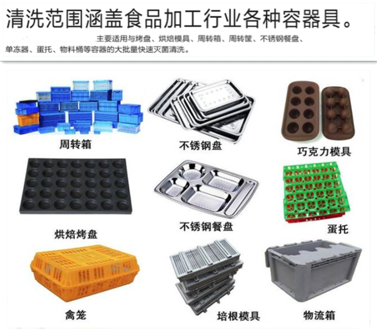 工作原理主要有:高壓高溫水清洗,主要是通過水泵將水箱中經(jīng)過加熱的水高速抽到機(jī)器噴淋管中,經(jīng)由裝在噴淋管上的噴嘴噴出,形成高壓水流噴淋在周轉(zhuǎn)箱上,經(jīng)由高壓高溫的水將周轉(zhuǎn)箱上的臟污沖離周轉(zhuǎn)箱表面,并且清洗過程中可以加入各種清潔溶劑,能更好的提高清洗效果。